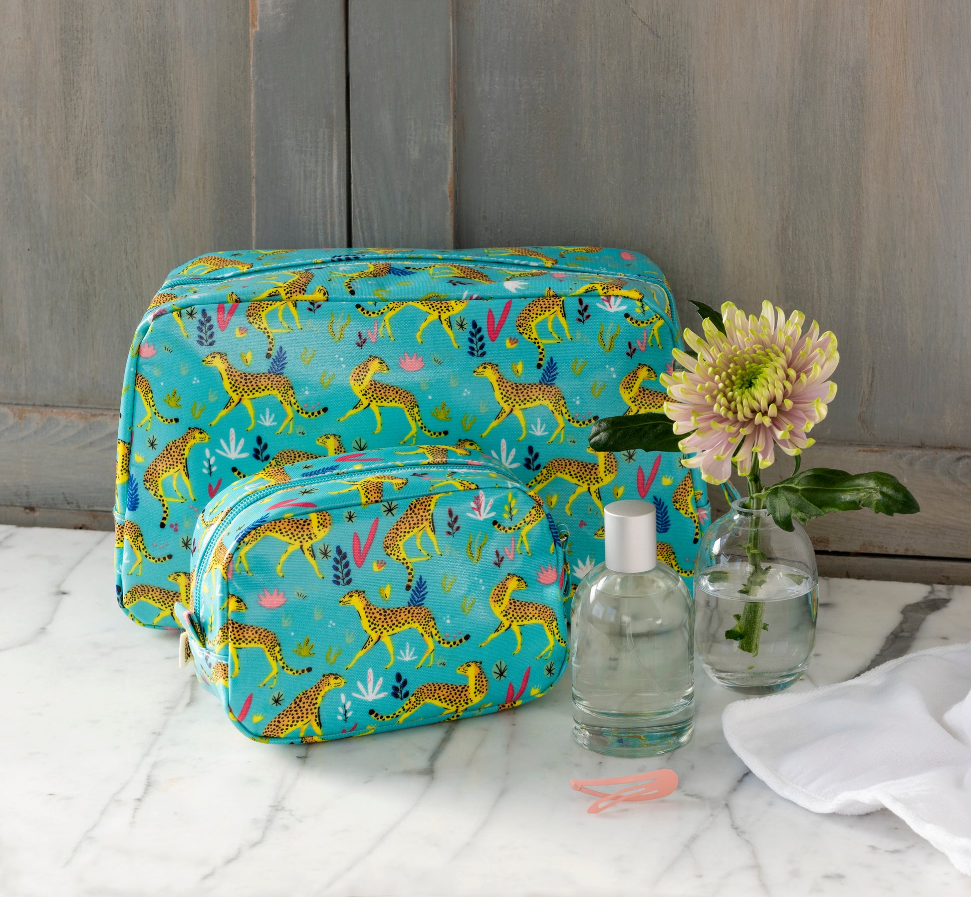 Elevate your beauty routine with our Cheetah Print Make Up Bag. Stylish and spacious, it keeps your essentials organized while adding a bold, fashionable touch. Perfect for travel or everyday use, this bag combines practicality with eye-catching design to make your makeup storage effortlessly chic.
