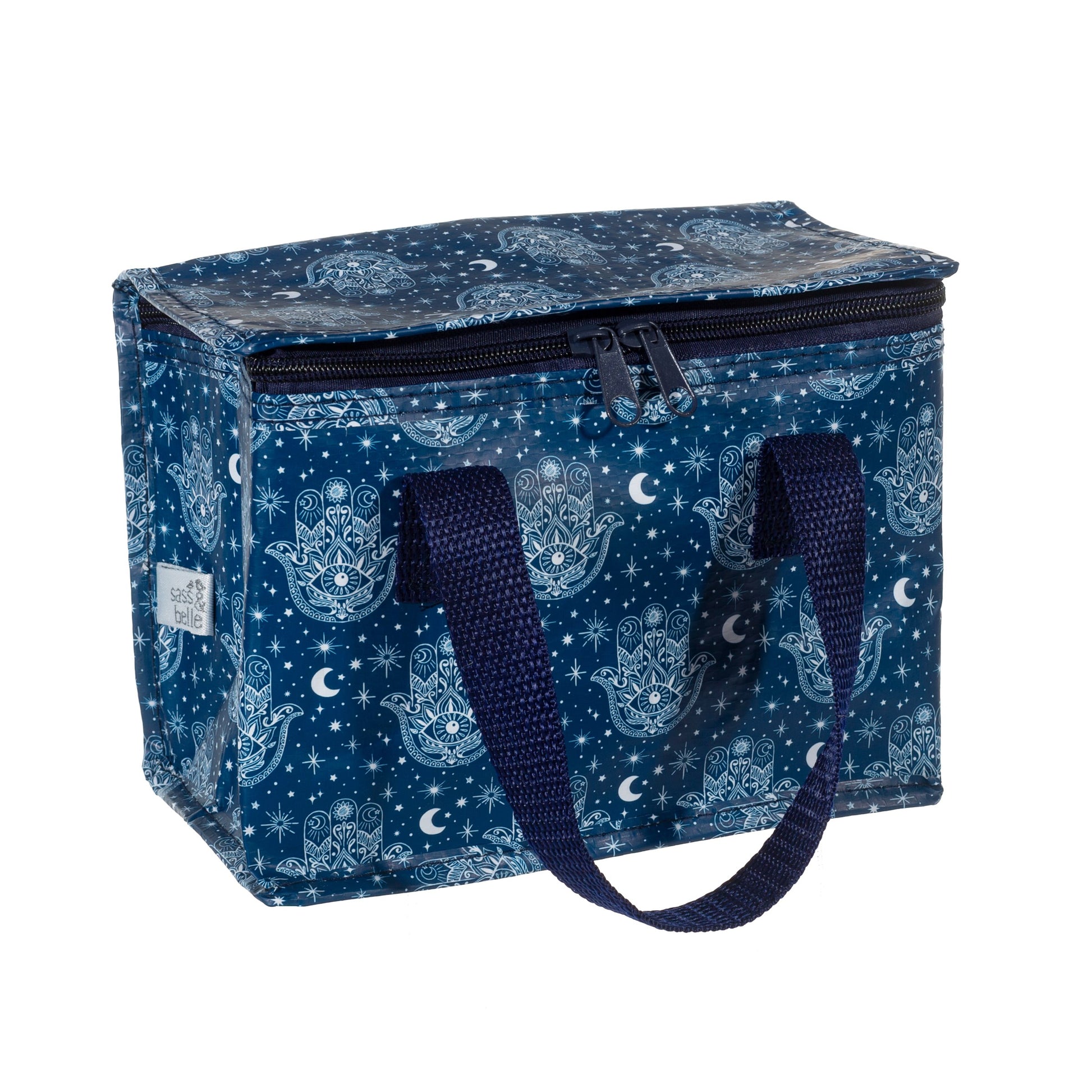 Introducing the Hamsa Lunch Bag - part of our unique collection of lunch accessories. The blue and white colourway adds a touch of whimsy, while the moon and star design brings a mystical element. Ditch single-use plastics in style.