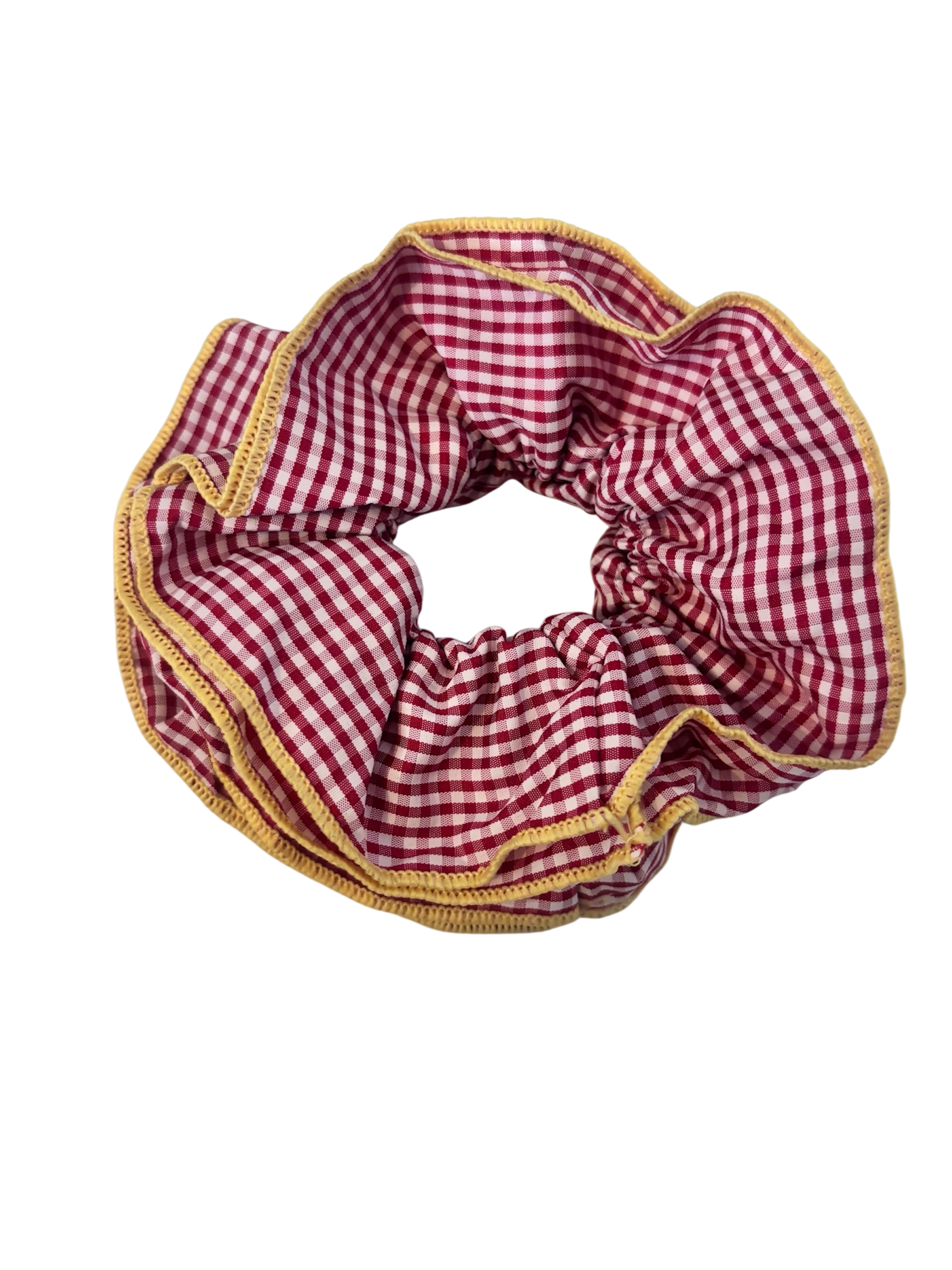 Elevate your hairstyle effortlessly with this Red Gingham Scrunchie. Its classic pattern adds a timeless touch to any look, while the soft fabric ensures gentle hold without damaging your hair. Perfect for everyday wear or special occasions, this scrunchie combines style and comfort to keep your hair secure and chic all day long.
